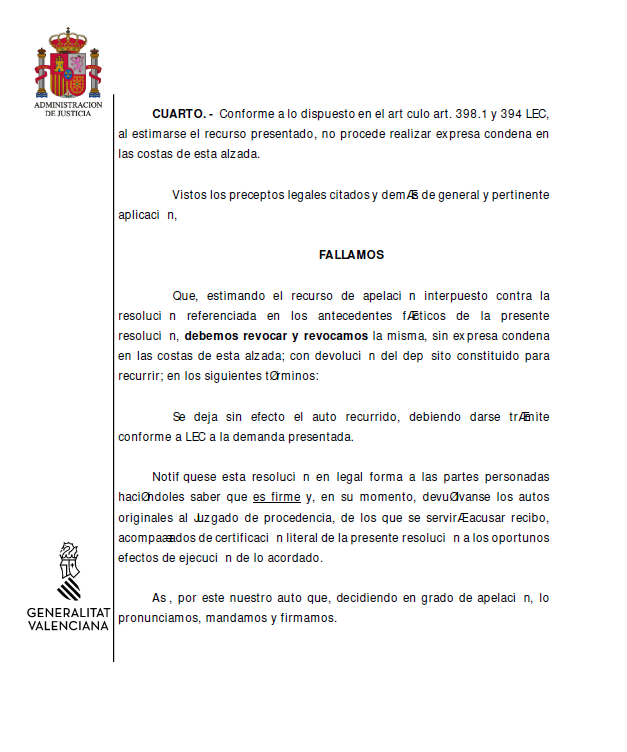 En Tech Abogados sumamos un nuevo éxito jurídico tras la estimación de un recurso de apelación, presentado por nuestra socia Silvia Campaña, y resuelto por la Sección Novena con sede en Elche de la Audiencia Provincial de Alicante (Auto nº 70/2026, de 9 de febrero).