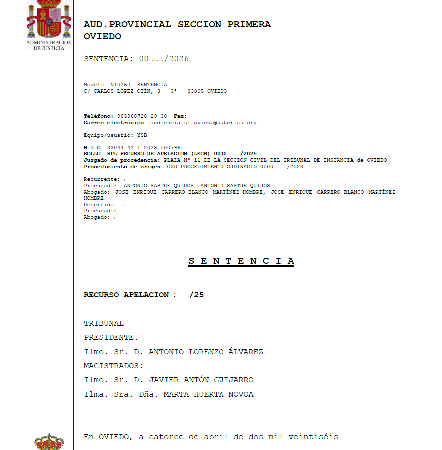 La Audiencia Provincial de Asturias reconoce la propiedad de un inmueble anejo tras revocar la sentencia de primera instancia abril 17, 2026 Una reciente sentencia de la Audiencia Provincial de Oviedo vuelve a poner de relieve la importancia de la correcta valoración de la