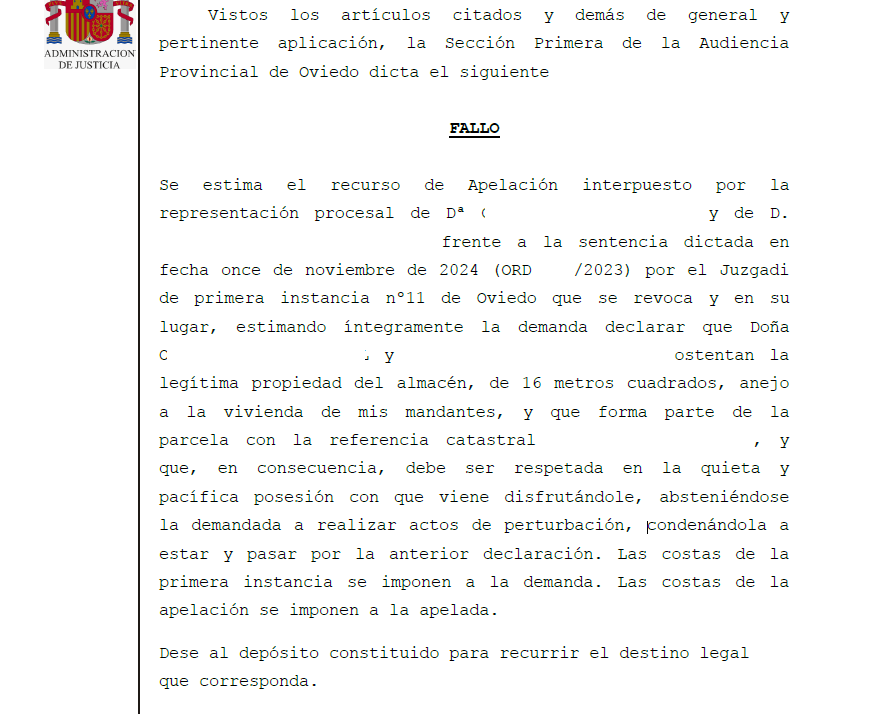 ⚖️ Revocación de la sentencia y reconocimiento del dominio